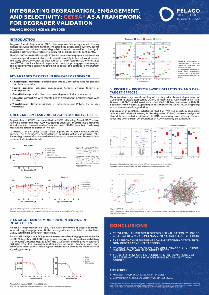 Whether you’re validating a lead degrader or profiling selectivity for IND-enabling studies, this poster illustrates how CETSA provides the integrated data you need to move forward with confidence.